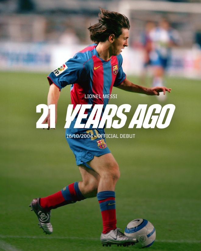 巴萨和梅西先后发动态,纪念梅西在巴萨首秀21周年!